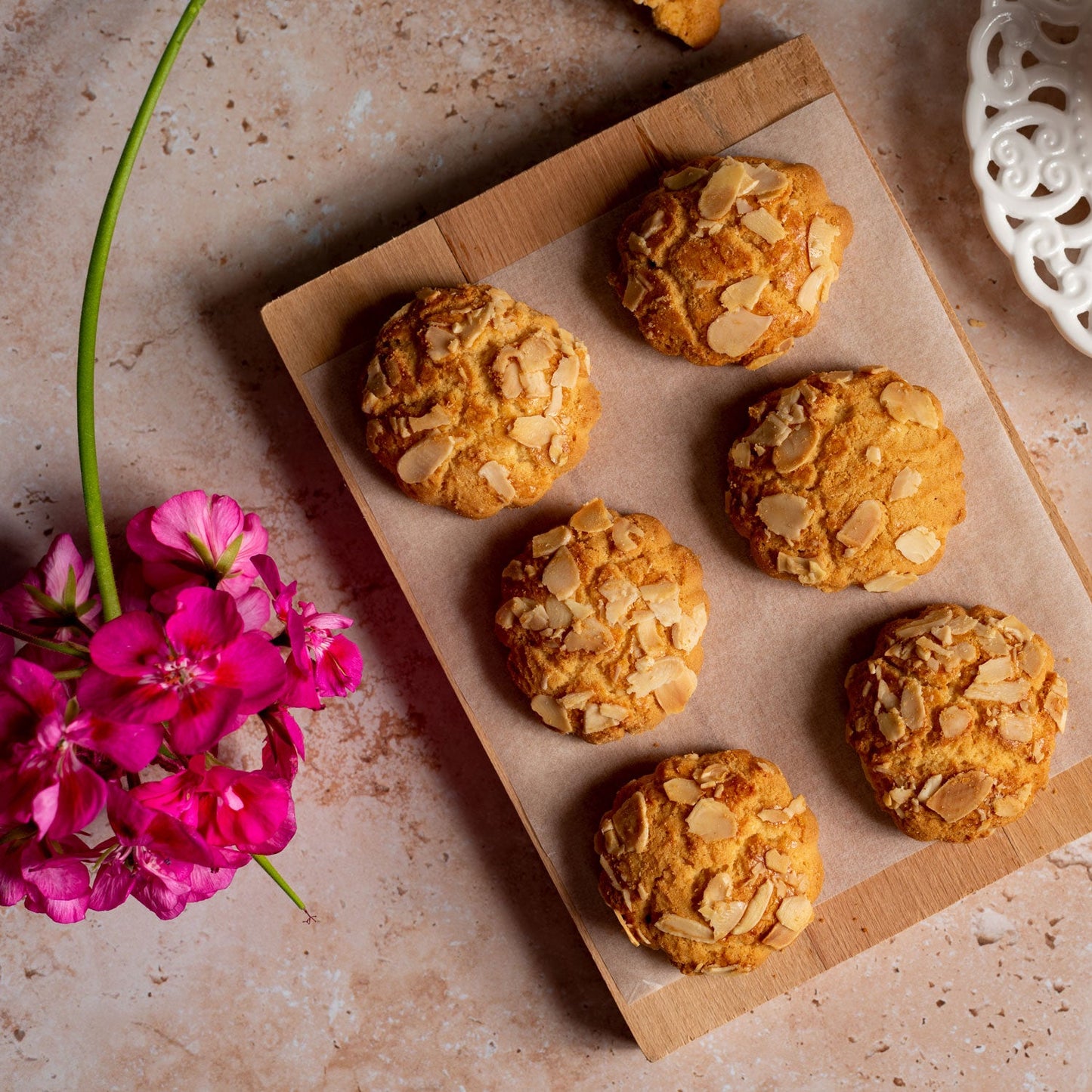 Diese Pasta Flora Kekse mit Mandeln bringen den Geschmack der klassischen griechischen Pasta Flora in eine alltagstaugliche Keksform. Der Teig ist weich und aromatisch, wird großzügig mit gehackten Mandeln bestreut und anschließend langsam gebacken, um eine zarte, leicht mürbe Textur und einen warmen, einladenden Duft zu erhalten.