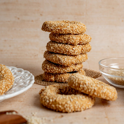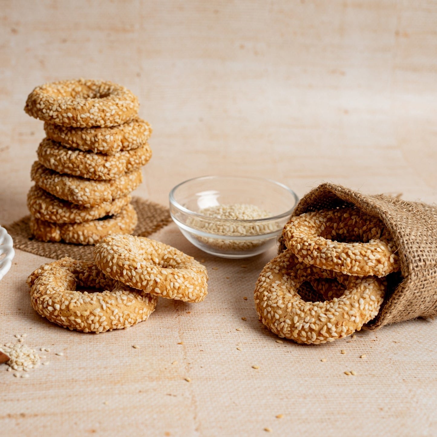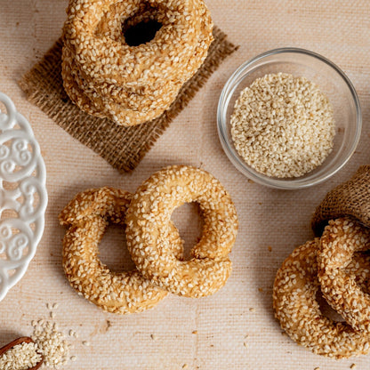 Jeder Ring bietet eine knusprige Textur, die perfekt zu Ihrem Kaffee oder Tee passt. Sie können einen abbrechen und jedes Stück in Tirosalata-Sauce tunken, um diesen zusätzlichen Käsegeschmack zu erhalten.
