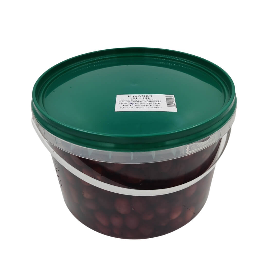 100% Kalamon-Oliven (aus Kalamata), Sonnenblumenöl, Salzlake, Essig