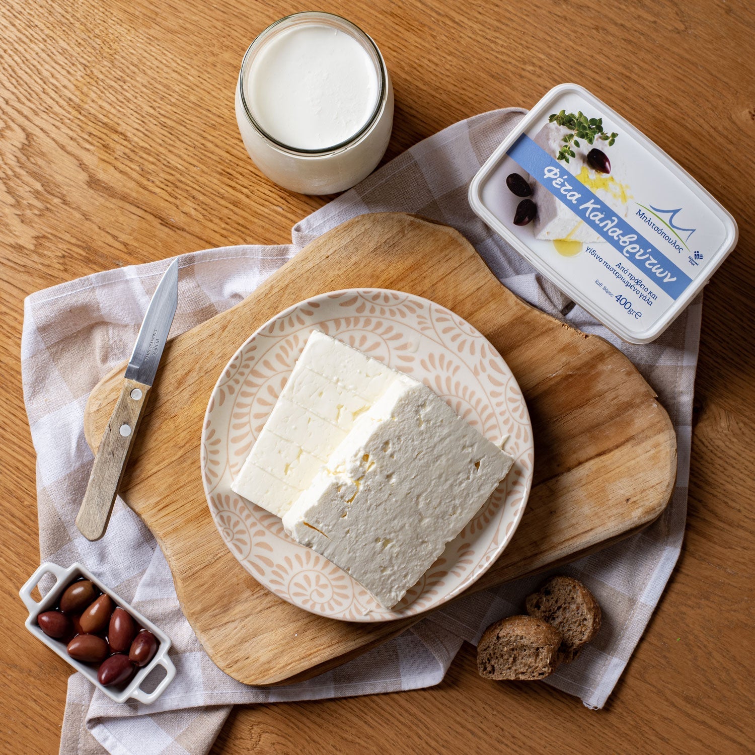 - 100% Ziegen- und Schafsmilch gesammelt von Bauern in der nahegelegenen Bergregion Kalavryta.
