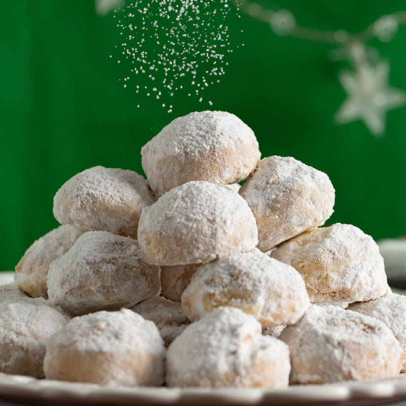 Οι κουραμπιέδες είναι από τα πιο χαρακτηριστικά γλυκίσματα των ελληνικών γιορτών: αφράτοι, βουτυράτοι και πασπαλισμένοι με άχνη ζάχαρη σαν χειμερινό χιόνι.