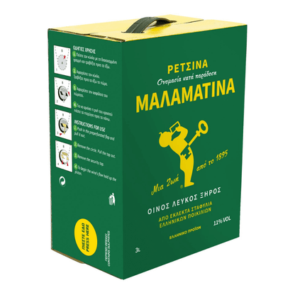 Η Ρετσίνα Μαλαματίνα είναι το πιο περιζήτητο ελληνικό παραδοσιακό λευκό κρασί. Αυτό το οικονομικό πακέτο των 3 λίτρων ρετσίνας Μαλαματίνα με κανουλάκι, είναι ιδανικό για να οργανώσετε ένα πραγματικό ελληνικό πάρτι με τους φίλους σας. Απολαύστε την ξεχωριστή γεύση και άρωμα αυτού του κλασικού κρασιού σε προσιτή τιμή.