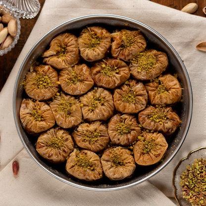 Κατευθείαν από την Αθήνα και φτιαγμένες με τα περίφημα φιστίκια της Αίγινας, οι Φωλιές αποτελούν μία από τις πιο εκλεπτυσμένες δημιουργίες της ελληνικής ζαχαροπλαστικής. Κάθε κομμάτι είναι ένας λεπτός «στρόβιλος» από φύλλο κρούστας που αγκαλιάζει ένα πλούσιο μείγμα από αμύγδαλα και αιγινίτικα φιστίκια, πριν βυθιστεί σε αρωματικό σιρόπι αμέσως μόλις βγει από τον φούρνο για τη χαρακτηριστική γυαλιστερή εμφάνιση.