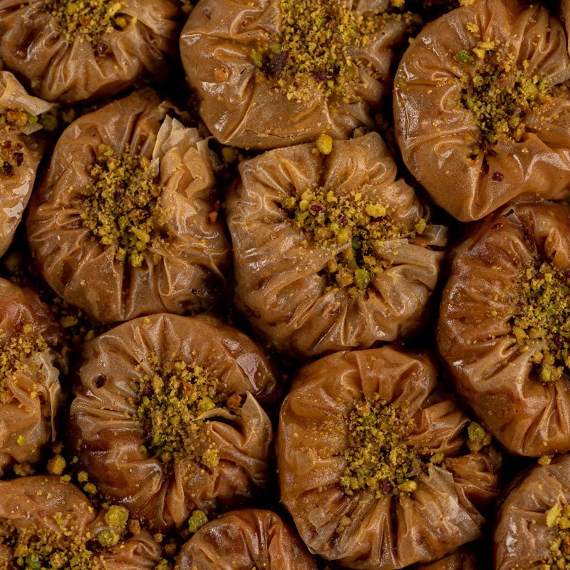 Συστατικά: Φύλλο κρούστας (αλεύρι σίτου, νερό, άμυλο σίτου, αλάτι), σιρόπι (ζάχαρη, γλυκόζη — περιέχει θειώδη), φυτικά λιπαρά (φοινικέλαιο, στεατίνη φοίνικα, πυρηνέλαιο), βούτυρο (γάλα), αμύγδαλο, φιστίκι.