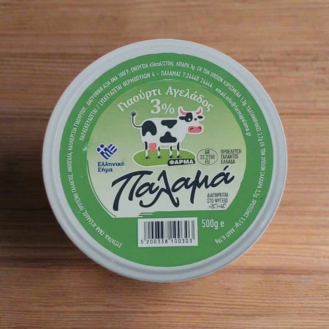 Στραγγιστό Γιαούρτι Αγελαδινό 3% – Φυσικά Πηχτό, Πλούσιο σε Πρωτεΐνη & Ανάλαφρο (500g)Palama