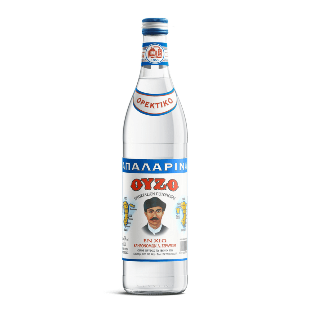 Ελληνικό ούζο από το νησί της Χίου. Η ιστορία του ούζου Apalarina χρονολογείται από το 1863. Απολαύστε μια γεύση από την πλούσια ελληνική κληρονομιά με κάθε γουλιά.