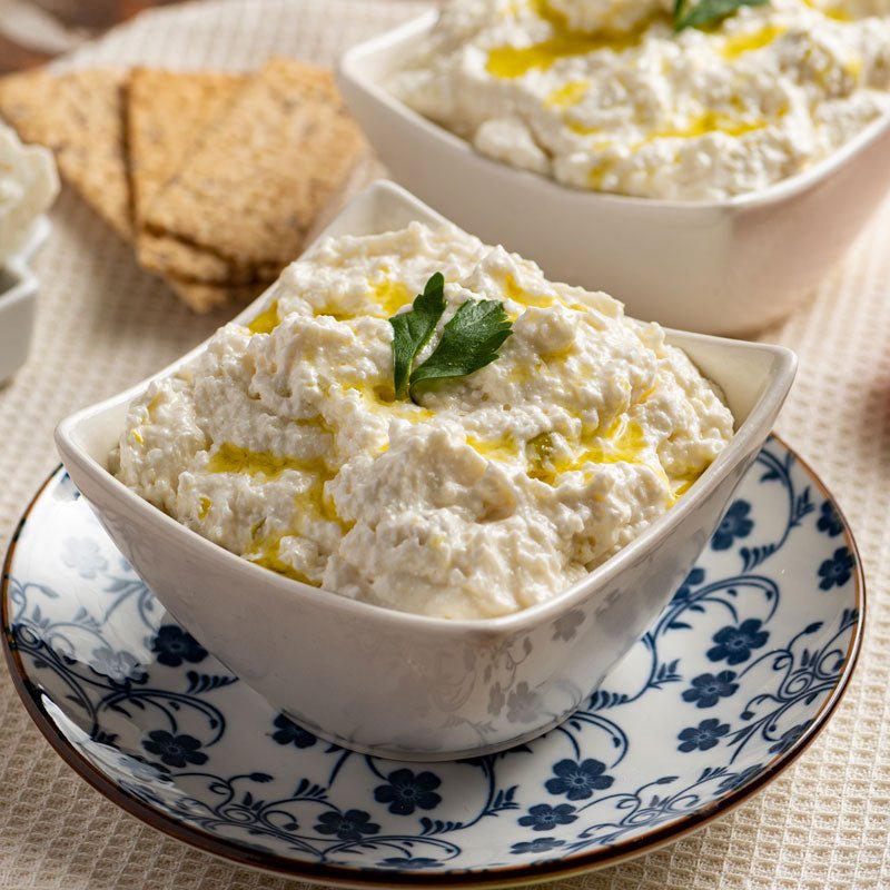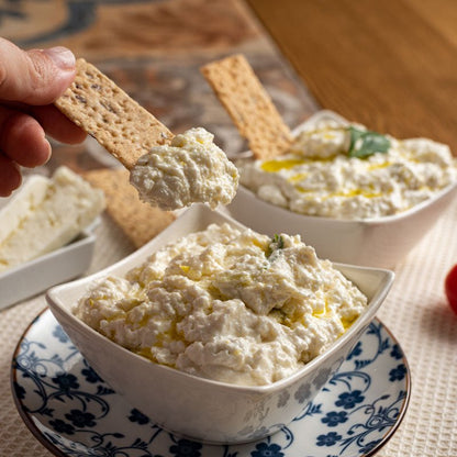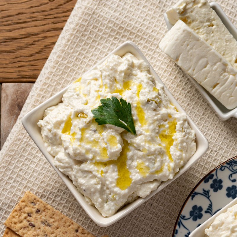 Tirosalata means ‘Cheese salad' in Greek and it has taken this name because it is a mix of Feta cheese and Mizithra cheese. It can be used as a spread, due to its mild taste and creamy texture, but it can also be used as a sauce to accompany your meals. What makes it special is the mix of the salty taste of Feta with the sweetness of Mizithra, making a combination that it is worth trying!