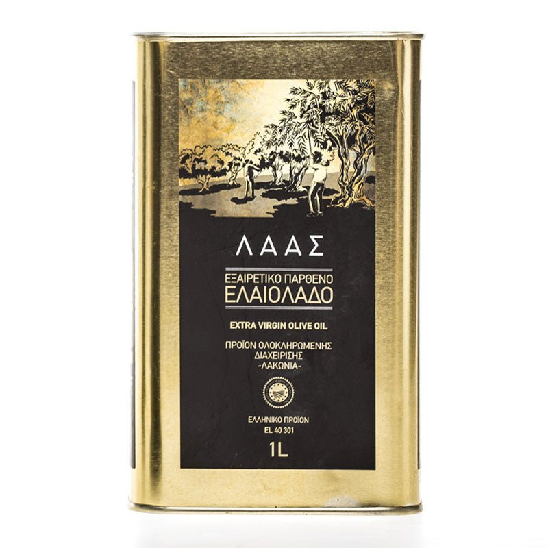 El aceite de oliva virgen extra Laas es una mezcla de Koroneiki y Athinolia y pequeños porcentajes de otras variedades poco comunes que crecen en la región de Laconia. Se trata de un aceite de oliva muy equilibrado, de composición aromática compleja, medianamente picante y amargo. Claramente influenciado por la presencia en la zona de cultivos como naranjos, plantas aromáticas y hierbas silvestres de las montañas Parnonas y Taygetos.