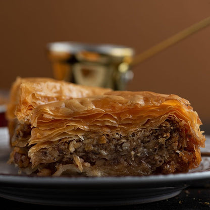 ¡El pastel griego más famoso en una ración más que suficiente para una persona! El Baklava griego es recién horneado y se envía unas horas más tarde desde una panadería griega a su casa. Este crujiente postre tradicional se compone de capas de filo (pasta filo) empapadas en miel y rellenas de pistachos picados. Es ideal para quienes gustan de las recetas caseras que hacía la abuela.