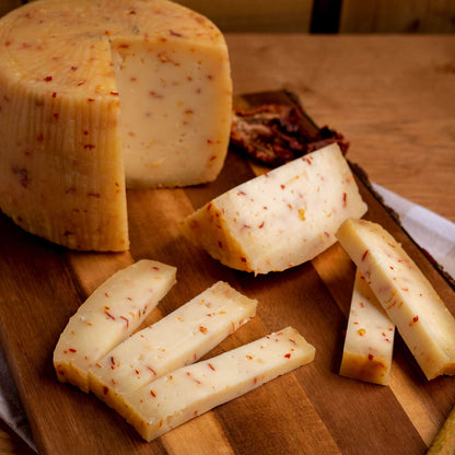«Graviera» cretense picante es una especialidad para los amantes del queso picante. Este queso de 200 g se elabora con una mezcla de especias y boukovo (pimiento rojo triturado) que le añade un sabor único y un tono vibrante. Su versatilidad lo hace perfecto para una gran variedad de platos, desde queso de mesa hasta para añadir un toque picante a pastas o salsas. Disfrute de este delicioso y picante queso con su vino favorito.