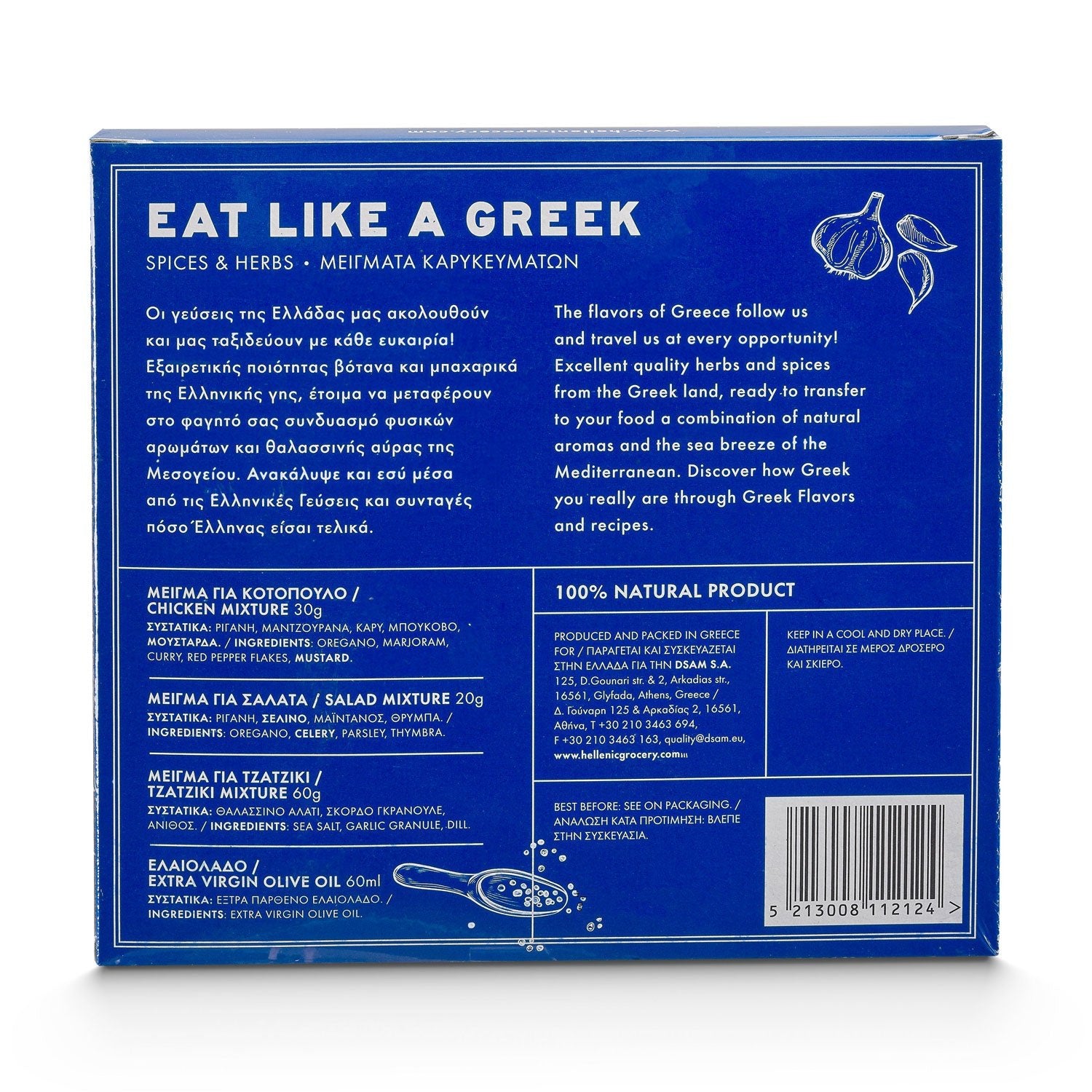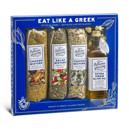 Pruebe los sabores únicos de Grecia con el set de cocina Eat Like a Greek. Este set incluye hierbas y especias de alta calidad de Hellas, proporcionando una auténtica experiencia culinaria griega. Disfrute de los aromas naturales y la brisa marina del Mediterráneo en cada bocado, acercándole lo mejor de la cocina griega. Amplíe su paladar y descubra sus raíces helénicas con cada plato.