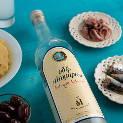 - 3x700ml + 1 vaso de Ouzo Plomari