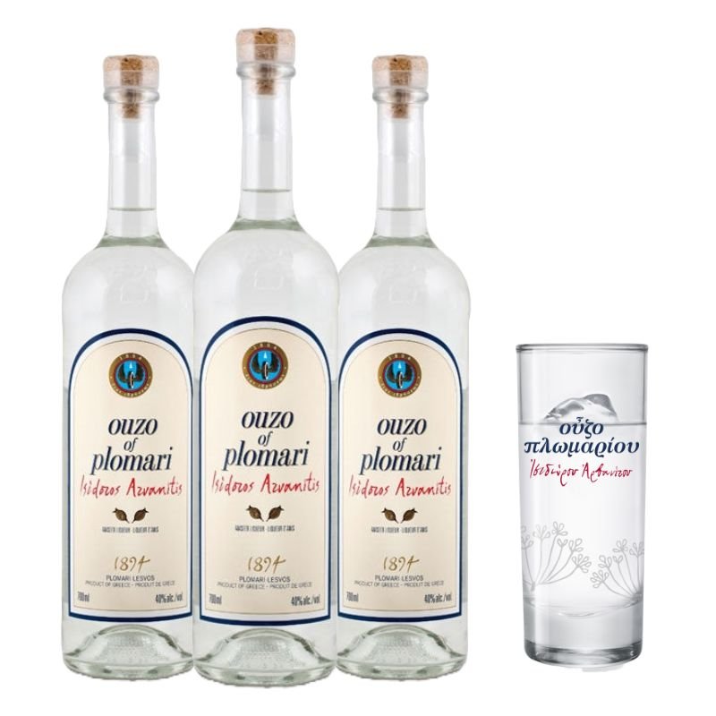 EDICIÓN LIMITADA - Ouzo Plomari 3x700ml + 1 vasoArvanitis
