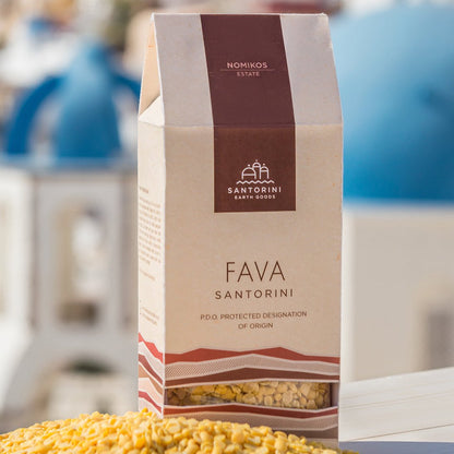 Contenido: En Santorini la vendimia tiene lugar todos los años en mayo. La producción limitada es sinónimo de calidad. La fava se cultiva y estandariza con los más altos estándares alimentarios. Un gran producto tradicional de Santorini