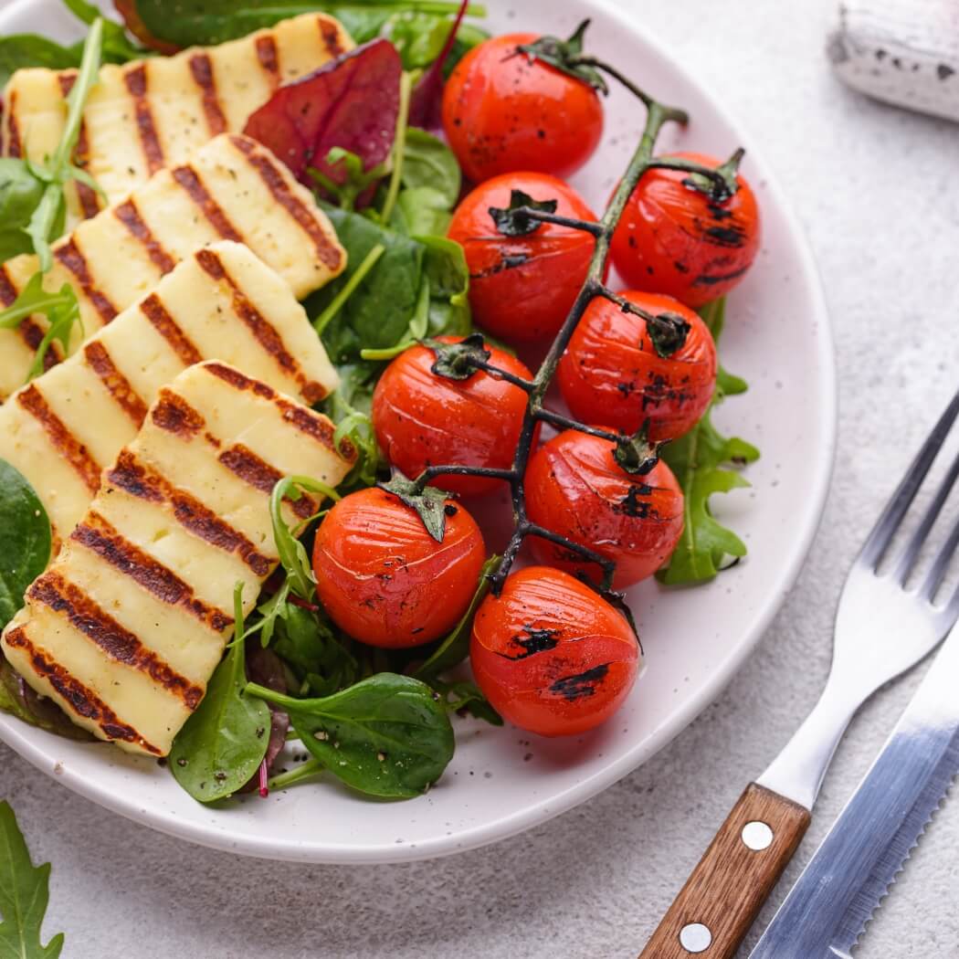 Elaborado con una mezcla tradicional de leche de vaca, oveja y cabra, con un toque de menta, el Halloumi DOP destaca por su aroma lácteo fresco, su textura elástica y la corteza dorada y crujiente que se obtiene al grillarlo o saltearlo en sartén.