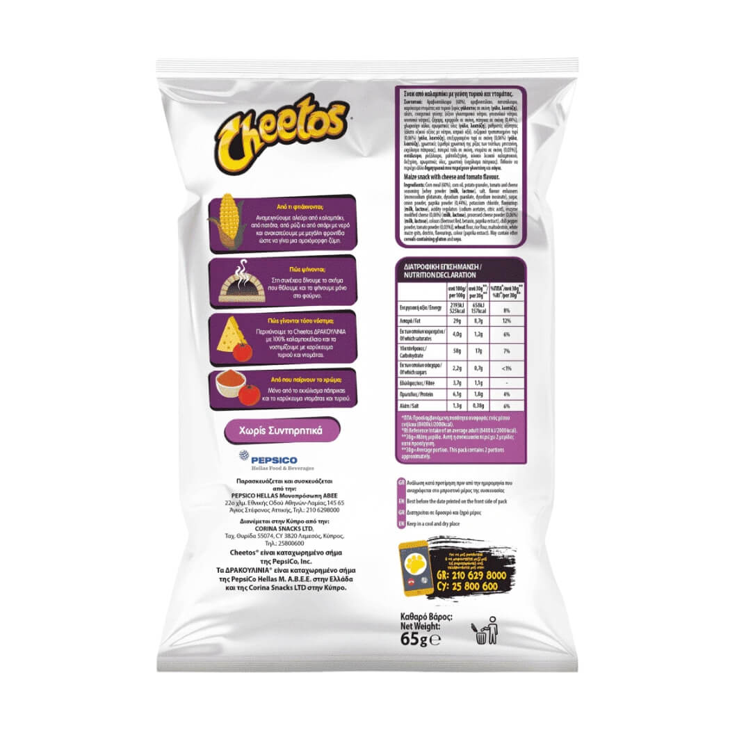 ¿Tienes antojo de esos deliciosos dientes de vampiro naranjas de tu infancia pero no los encuentras en tu tienda más cercana? Ahora por fin puedes disfrutar de los famosos Cheetos Draculinia, un snack de maíz al horno hecho con maíz, queso y tomate, en 8 paquetes de 60g en cualquier momento de tu ajetreado día o ¡compártelos con tus amigos!