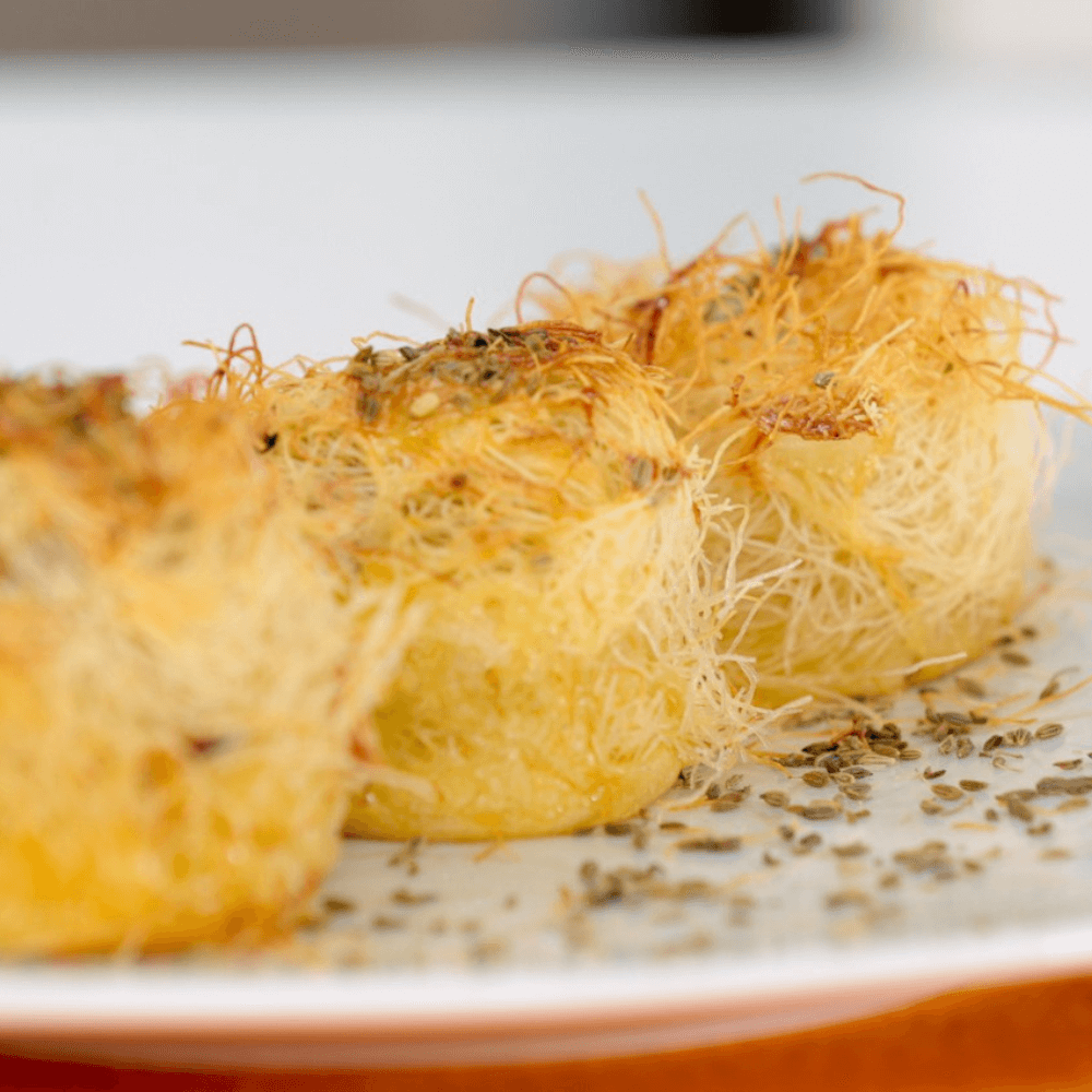 Delicados hilos de creatividad en tu cocina: Descubre la magia de la masa kataifi, elaborada con finísimos hilos elásticos de harina de alta calidad. Su textura única envuelve cualquier relleno con elegancia, transformando cada plato en una experiencia visual y de sabor inolvidable. Perfecta para clásicos griegos como el Kataifi tradicional (relleno de nueces y bañado en almíbar) o el Ekmek (capas de crema pastelera y nata), pero su potencial va mucho más allá de lo tradicional.