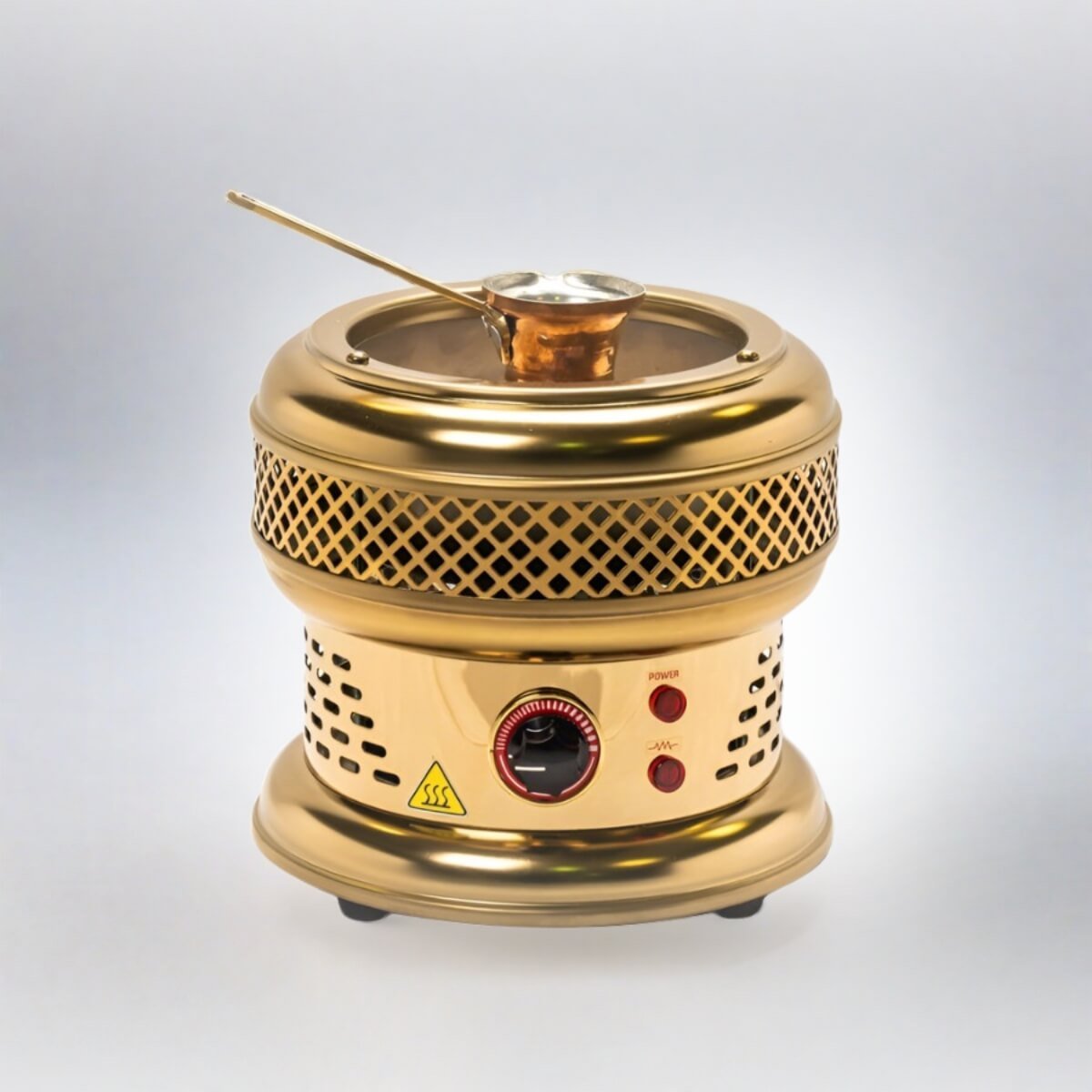 - Viene con una bolsa de arena especial y una pequeña cafetera de cobre (briki)