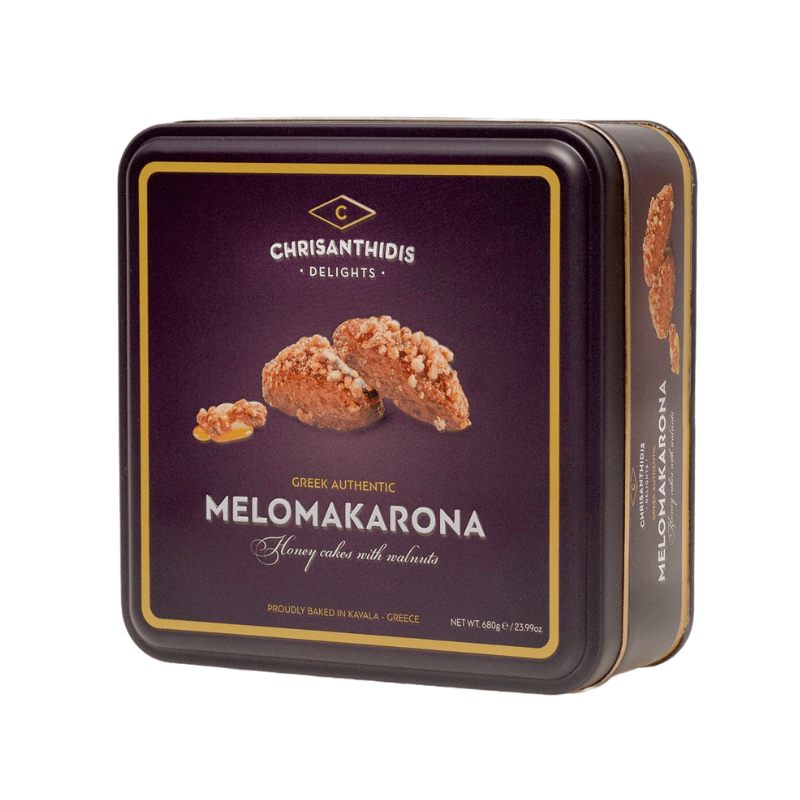 Melomakarona es uno de los dulces griegos más clásicos y está profundamente ligado a la Navidad y a las fiestas en general. Es un dulce que gusta a todo el mundo, ya que combina ingredientes puros y deliciosos, como miel griega, nueces, canela ¡y muchos más! Sin embargo, no se limite a disfrutar de la increíble Melomakarona sólo en vacaciones, ¡es un dulce que puede disfrutar todo el año! Estas Melomakarona de Chrisanthidis se elaboran siguiendo la receta tradicional y son representativas de este dulce clásico. Su sabor excepcional y su elegante envase hacen de este producto un regalo ideal para sus amigos, colegas y familiares.