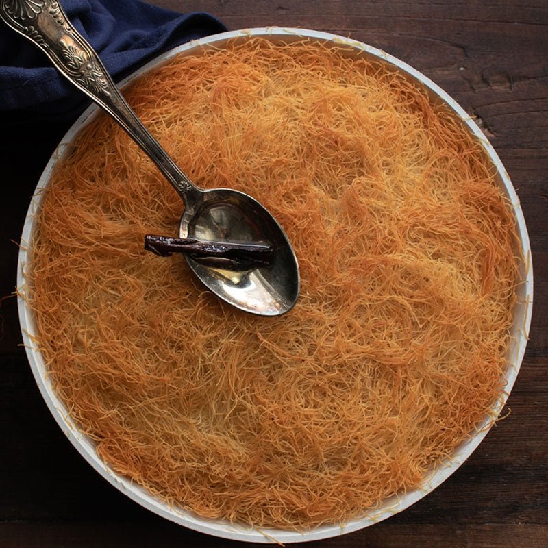 El Galaktoboureko Kataifi Royale reúne dos joyas de la repostería griega: el kataifi crujiente y dorado, y la crema galaktoboureko de sémola, suave y sedosa.