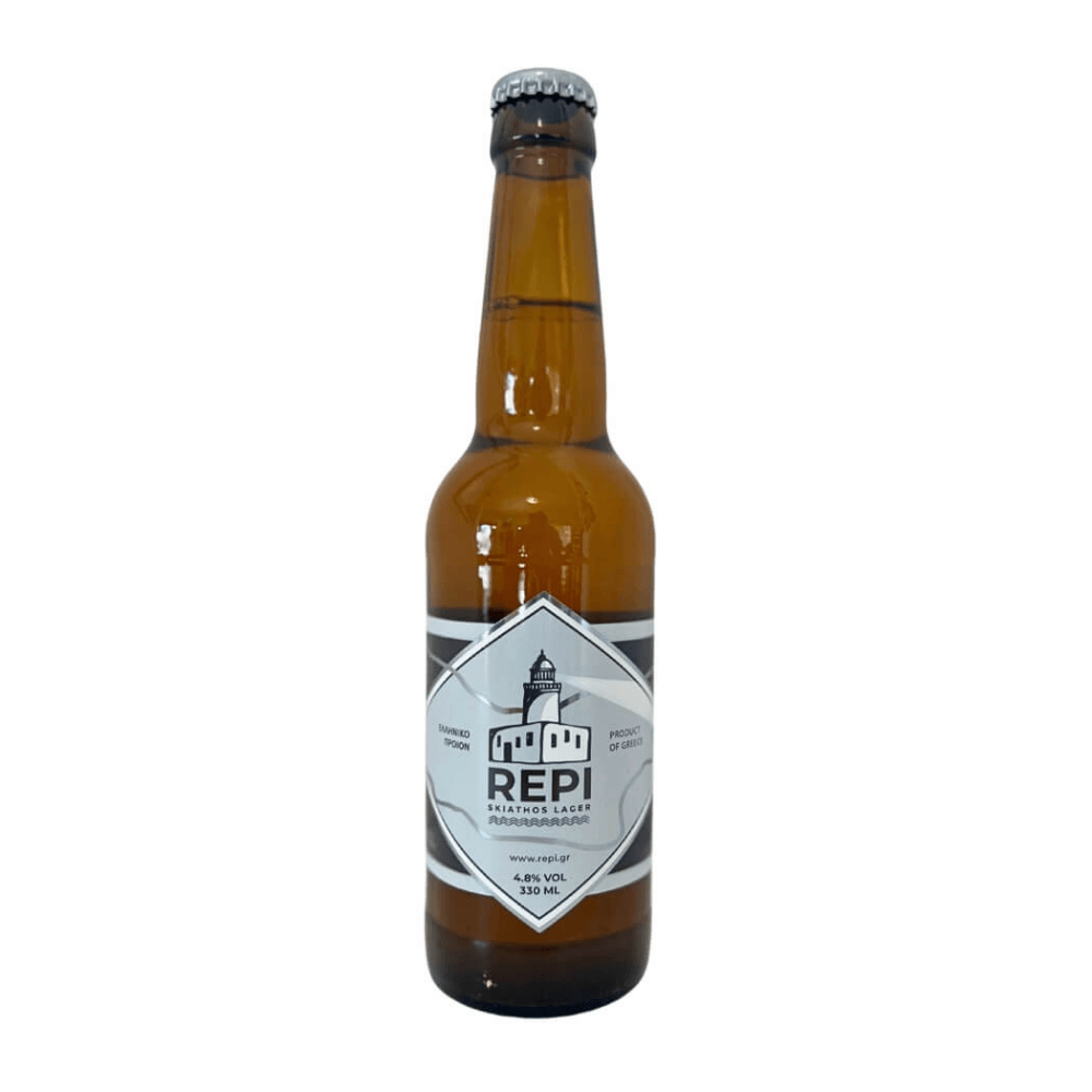 La cerveza "Repi" se elabora mezclando ingredientes locales de las islas Skiathos y Repi, principalmente pino de los pinos y kritama salvaje que se encuentra disperso por las playas. Esta cerveza lager de 330ml contiene el sabor y aroma auténticos de Skiathos, ¡la manera perfecta de dar la bienvenida al verano!