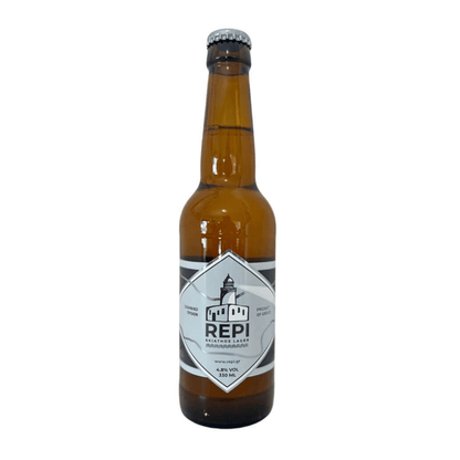 Historia: "La cerveza Repi" fue creada por Apostolos y Giorgos, quienes utilizan exclusivamente ingredientes locales para implementar los aromas y sabores de Skiathos en la cerveza. Se elabora en la microcervecería de Volos, en Tesalia. Repi es una pequeña isla griega frente a la costa este de Skiathos, en las Islas Espórades, Grecia, donde se puede encontrar un asentamiento abandonado y un faro que fue construido en 1914.