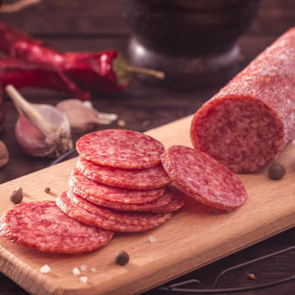 Descubre el rico y sabroso sabor del salami tradicional de Lefkada. Hecho de cerdo fresco y empaquetado en un práctico tamaño de 200 g, este salami griego tradicional es perfecto para añadir un toque de autenticidad a tus comidas. Tan delicioso, es un imprescindible para cualquier amante de la buena comida.
