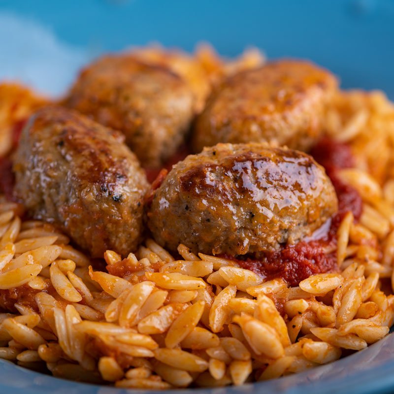 Ingredientes: 50% orzo (contiene gluten), 28% albóndigas (ternera, cerdo), agua, panecillos de trigo, cebolla, sal gorda,, especias, tomate, 3,5% aceite de oliva virgen extra, vino tinto, aceite de girasol, azúcar. Puede contener trazas de semillas de sésamo, leche, mostaza, huevos, apio, soja, frutos de cáscara, pescado, gambas y cangrejos.