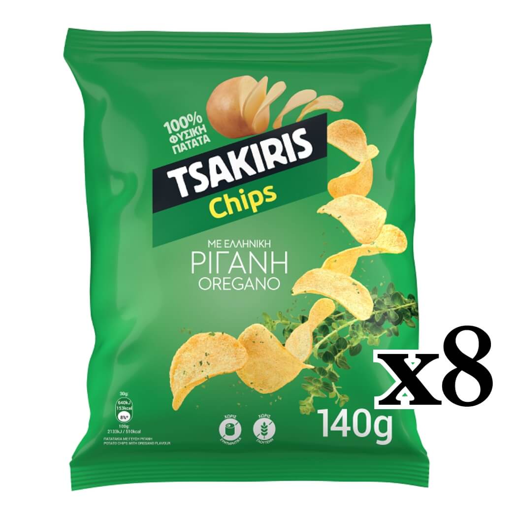 Tsakiris patatas fritas sabor orégano - 8x140gTsakiris