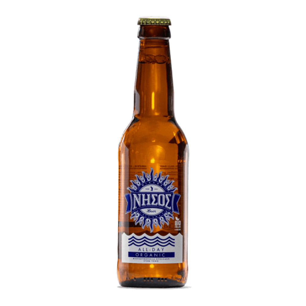 Nissos All Day est une bière composée à 100% de malts d'orge biologiques. Elle est également sans gluten, c'est donc la bière idéale pour ceux qui veulent exclure le gluten de leur alimentation. Elle est brassée en utilisant des techniques de lagering séculaires, la levure de fermentation à froid fournit une base propre qui permet aux arômes des trois différents houblons nobles de briller. Cette bière blonde de haute qualité, douce et de style européen est idéale pour toutes les occasions, de jour comme de nuit, comme son nom l'indique !
