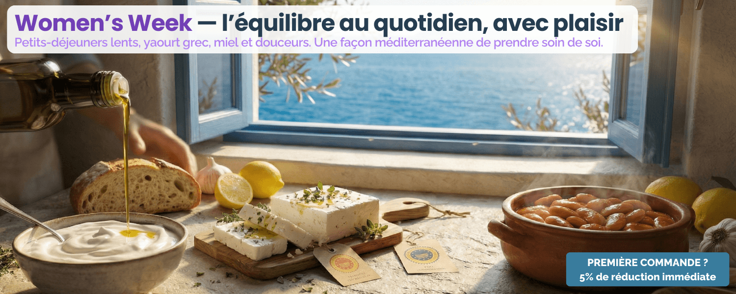 La cuisine grecque est plus qu’un ensemble de recettes : c’est une manière de vivre. Ancrée dans le régime méditerranéen, elle célèbre la simplicité des ingrédients, la justesse des saveurs et l’équilibre. De l’huile d’olive aux olives, des fromages aux essentiels du garde-manger, nous sélectionnons des produits qui reflètent le savoir-faire régional grec et la tradition du quotidien.