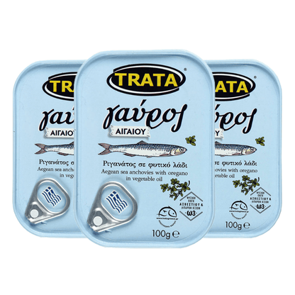 Le acciughe all'origano sono una delizia salata che profuma di estate greca! Si compone di acciughe appena pescate, leggermente al forno e poi mescolate con origano greco e un filo d'olio. L'origano unito al gusto naturale delle acciughe creano un risultato da provare! È un antipasto molto carino per la tua tavola oppure puoi servirlo come "meze" per accompagnare il tuo ouzo o tsipouro.
